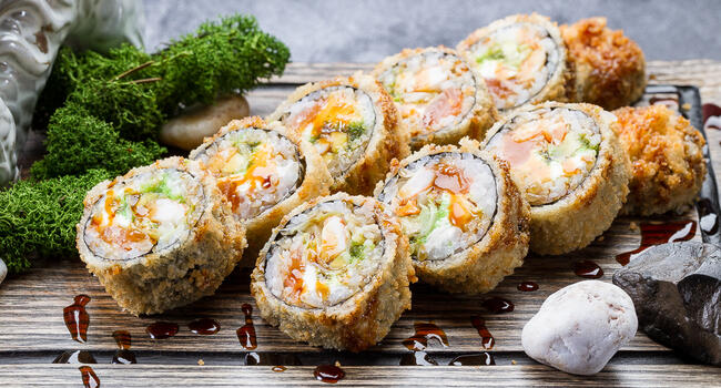 Достоинств у роллов много – они обладают приятным вкусом, питательны и полезны. За счет содержания риса блюдо насытит вас на длительное время, а начинка, к примеру, красная рыбка, подарит настоящее наслаждение. Но не только рыба может быть начинкой для этого блюда: существуют рецепты и с иными морепродуктами (креветками, икрой, крабовым мясом) и овощами. Вкус роллов могут дополнить различные соусы, а также нежнейший сливочный сыр.