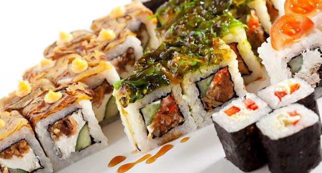 В нашей доставке готовой еды есть азиатские блюда, которые делаются из очень качественных ингредиентов японской кухни, морепродуктов и лосося. Они еще и богаты йодом и витаминами B благодаря водорослям и дарам моря.